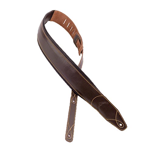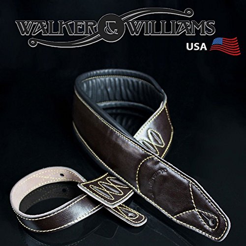 Walker & Williams C-22 Dark Brown Premium Top Grain Leather Padded Guitar Strap Extra Wide