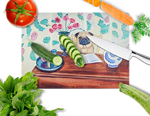 Caroline's Treasures Fawn Pug Reading in the Kitchen Glass Cutting Board, Large, Multicolor