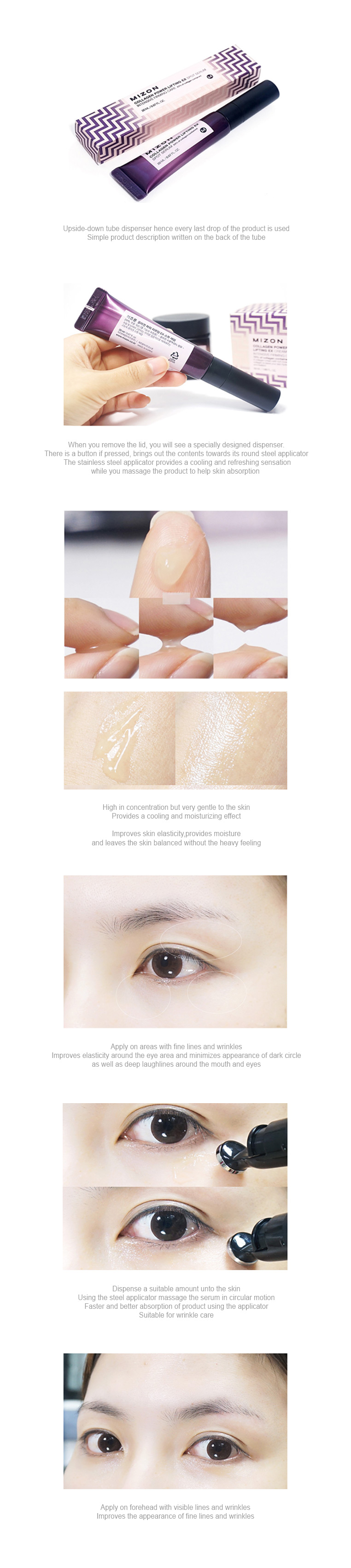 A smart applicator is attached, helping the skin’s absorption, and it contains highly-enriched collagen to allow concentrated care of troubling areas.