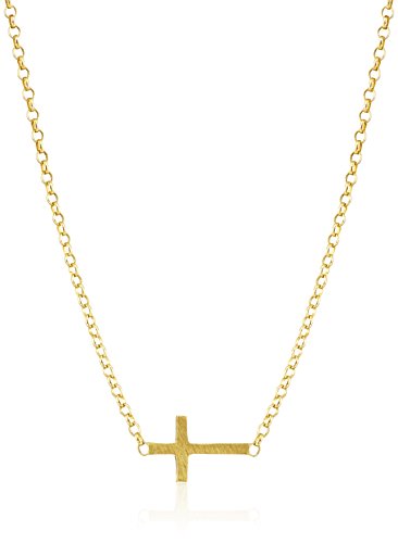 -. Feature : 14kt gold dipped sterling silver necklace featuring a sideways cross soldered to the chain