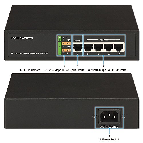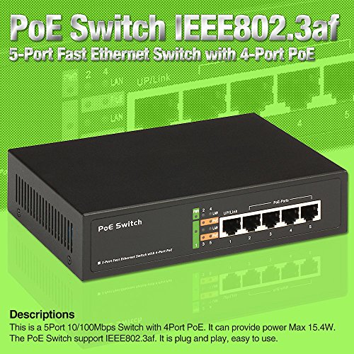 -. Binding : Electronics -. Brand : Generic -. EAN : 0700814944674 -. Feature : 4-Port Fast Ethernet 10/100 Mbps PoE Network Switch Hub / Complies to IEEE 802.3af PoE standard and is backward / Compatible with all IEEE 802.3af or legacy / Plug-and-play no configuration required / Save up to 83% power with Green Technology -. Label : Able Sky -. Manufacturer : Able Sky -. Model : CPA-POE-PSE5416E -. MPN : CPA-POE-PSE5416E -. PackageQuantity : 1 -. PartNumber : CPA-POE-PSE5416E -. ProductGroup : Speakers -. ProductTypeName : CONSUMER_ELECTRONICS -. Publisher : Able Sky -. Studio : Able Sky -. Title : 4-Port 10/100 Mbps Ethernet Network PoE Switch Hub PnP for IP CCTV Camera -. UPC : 700814944674