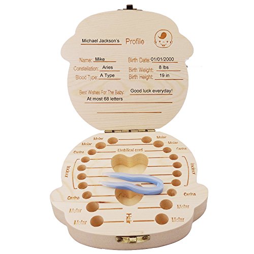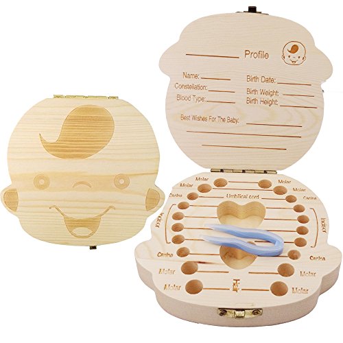 RECORD THE TEETH CHANGING PROCESS: This wood tooth box has openings for all the first teeth. Place the shedding teeth inside the gaps and keep them safe! On the top you can write baby’s personal information, like name, birth weight or even blood type!
