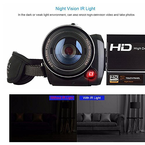 Support Night vision function:IR CUT filter,night vision in black and white colro. So you can shoot and take pictures in the dark night with high-definition resolution.Support 64GB external SD card.The camcorder is with Inter nal microphone and speaker.Can be used to shoot videos and take photos.