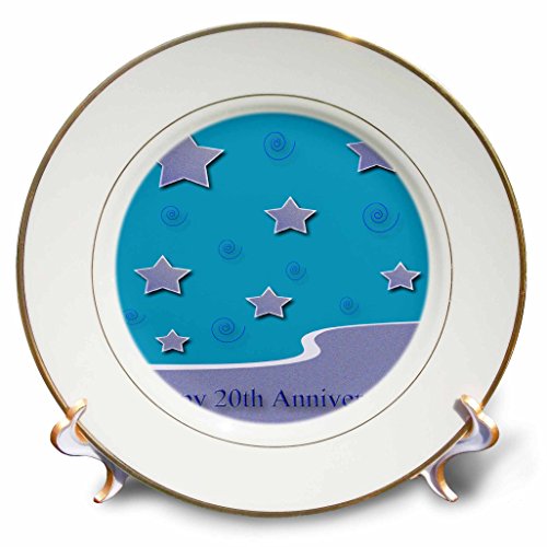 3dRose cp_34328_1 Happy 20th Anniversary, Lavender Stars on Aqua Employee Anniversary-Porcelain Plate, 8-Inch