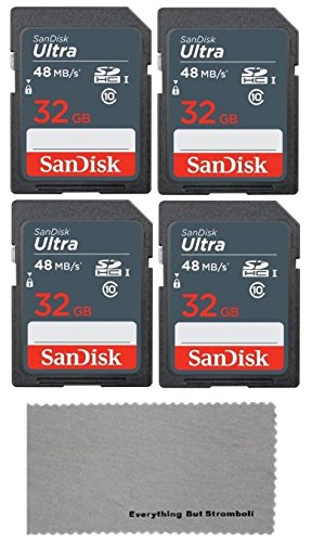 SanDisk 32GB Ultra (4 Pack) UHS-I Class 10 SDXC Memory Card, Retail Packaging - with (1) Everything But Stromboli (tm) Microfiber Cloth