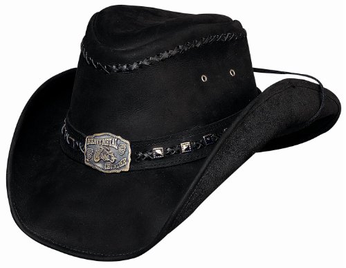 You are looking at a brand new, with tags, Black Leather cowboy hat that is called Thunder Struck, made by Montecarlo Hats.