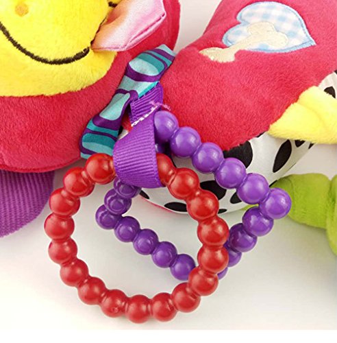 The cute toy(ears and back) can make fun sounds when baby pulls and grabs.