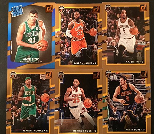 2017-18 Donruss Cleveland Cavalier Complete Set 6 Cards - Including Ante Zizic RC, Lebron James, J.R. Smith, Isaiah Thomas, Derrick Rose, and Kevin Love in a Plastic Case.