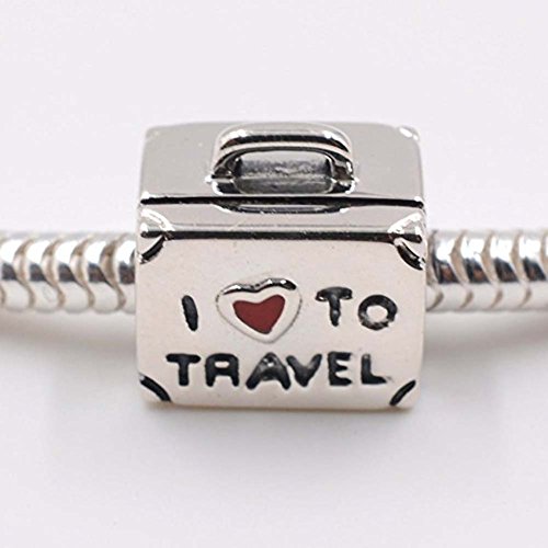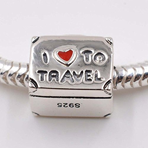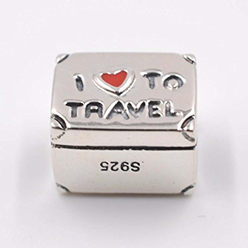 I Love To Travel Charm 925 Sterling Silver Suitcase Charm with Red Enamel Heart Travel Luggage Charm for Bracelet