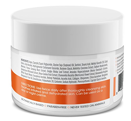 -. Feature : ANTI-AGING- Nourish your skin and turn back the clock. Diminish dark spots, blemishes and fine lines. This hydrating facial moisturizing cream will have you looking young and beautiful. / LOOK FLAWLESS, FEEL FLAWLESS - Nourish your skin and give it what it needs to look its best. This formula uses an extract produced by bio-fermentation of a selected strain of red marine algae abundant along the shores of the Hawaiian Islands / CLINICALLY TESTED - Clinical studies have shown a substantial increase in collagen stimulation, 20% increase in firmness within 4 weeks. Skin moisture & hydration increase 70% within 4 weeks. / SKIN HYDRATION - This unique innovative formula hydrates & treats the skin of Face, & Neck areas; Restores your skin's texture, tone, elasticity, firmness, radiance & clarity; Soothes irritated & dehydrated skin. / ESSENTIAL OIL SCENTED- Natural Ingredients & Natural Essential Oils are blended with water-based ingredients to provide outstanding results. No sensitizing fragrances are used. Paraben Free, Gluten Free, with natural color & natural smell.