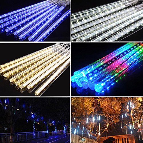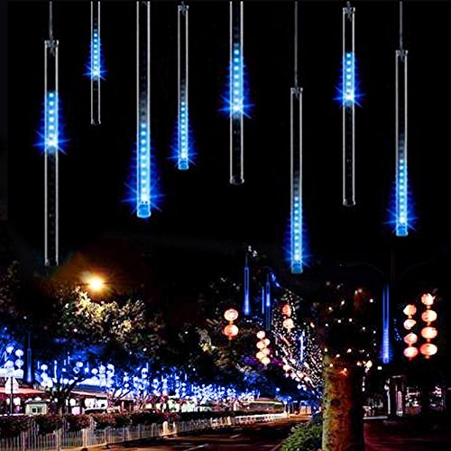LED Meteor Shower Lights, AveyLum 30cm 8 Tube 144 LEDs, Snow Falling Raindrop Cascading Lighting for Wedding Xmas Garden Tree Decor ( Blue)