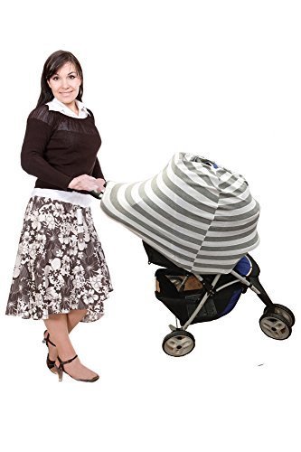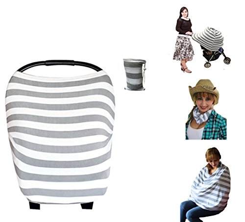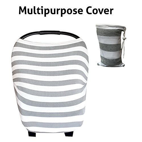 Baby Car Seat Cover, Nursing & Breastfeeding Cover - 5 in 1 Multi-Use Stretchy Fabric - Covers High Chair, Stroller & Shopping Cart with Universal fit