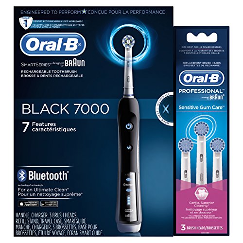 Oral-B BLACK 7000 Electric Toothbrush Bundle with Sensitive Replacement Head,3 Count