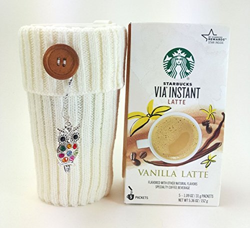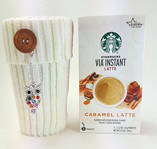 Cute Snuggly White Coffee Cup Sweater With Wood Button Feels Warm and Cuddly In Your Hands.