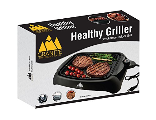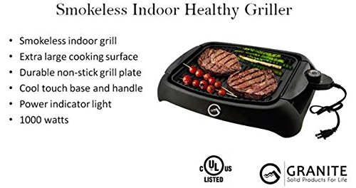 Granite Premium Indoor Smokeless Healthy BBQ Griller - Extra large cooking surface, durable non-stick grill plate
