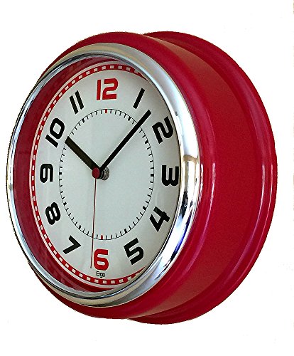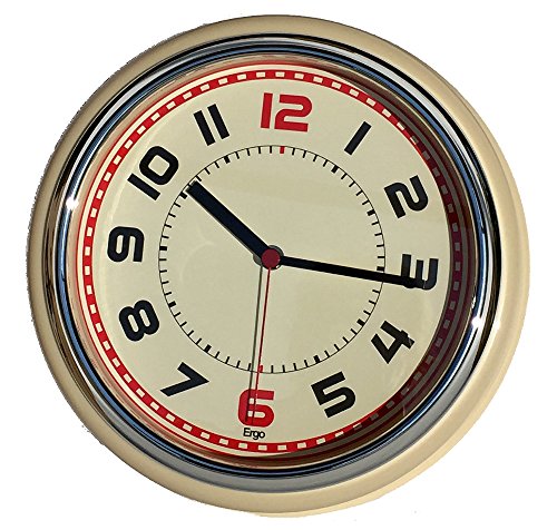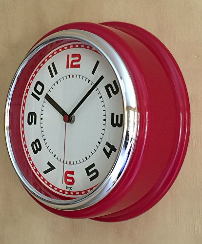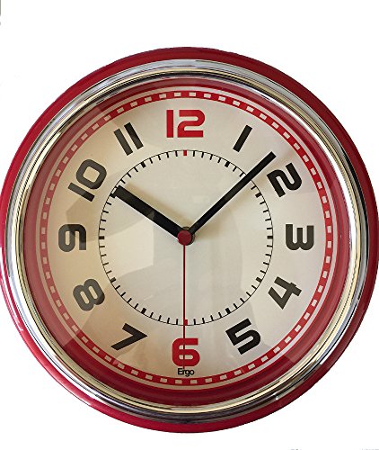 -. Feature : Retro style with big black number - 12 and 6 are red / Colored frame (red, ivory or black) with a beige background and red sweep / Silent sweep movement / Dimensions : 12 x 12 x 4 (thick) / Works with any AA battery (not included), keeps accurate time, Perfect clock for dining rooms, living rooms, family rooms, bedrooms, study room, kitchen, office, or conference room