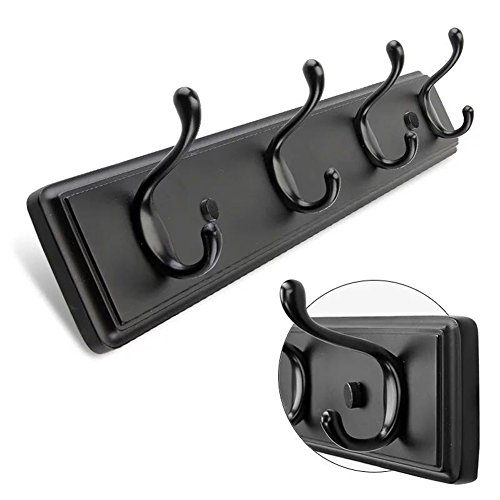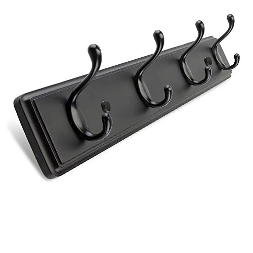 ANNSY 4-Hook Coat Rack Natural Bamboo Coat Rack Wall Mounted Heavy Duty Hanger Hook Rack for Home and Office (Black)