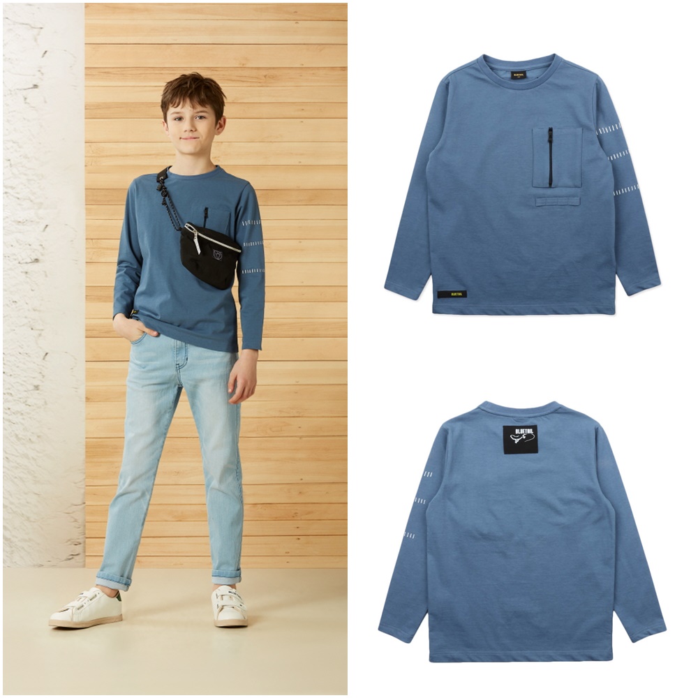 미드톤의 블루컬러가 세련된 유러피안 감성이 느껴지는 티셔츠입니다.