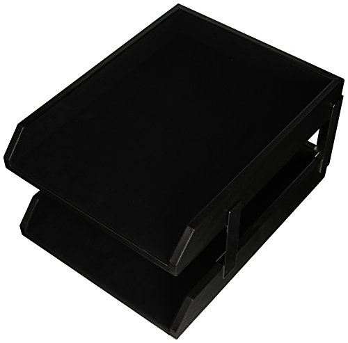 Dacasso Classic Black Leather Front-load Letter Trays with Silver Stacking Posts
