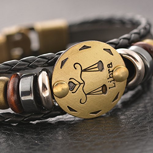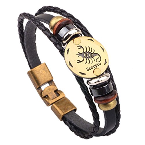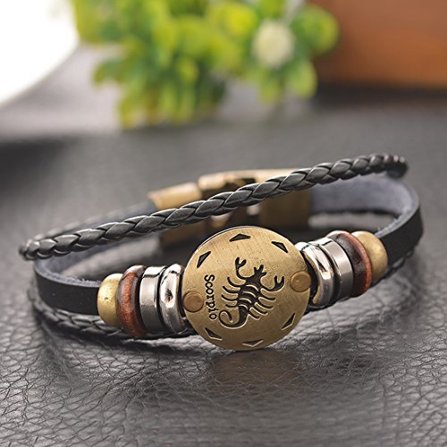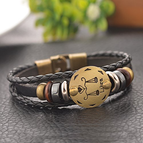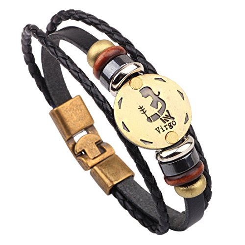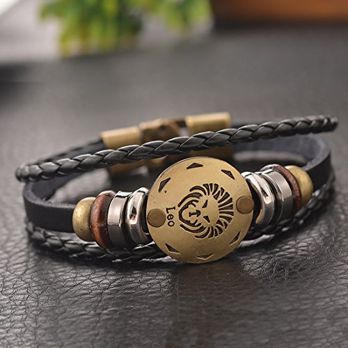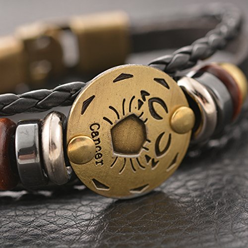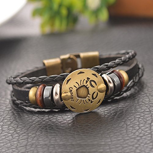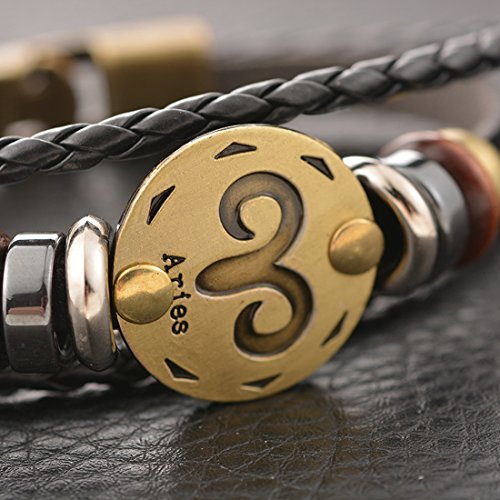 MJARTORIA Damen Herren Sternzeichen Armband Vintage Lederarmband Surferarmband Armreif Geflochten Seil Sternbild