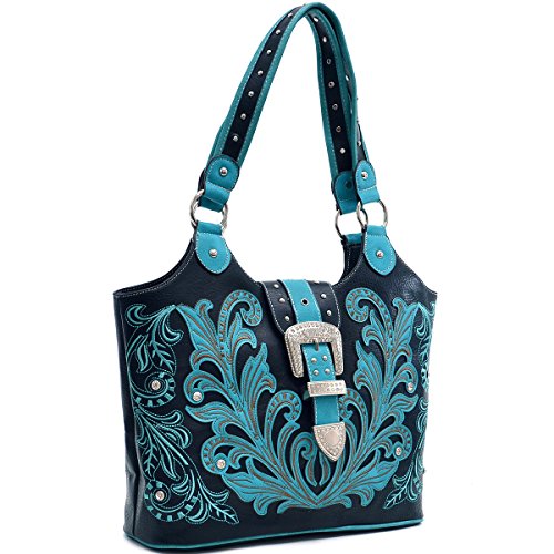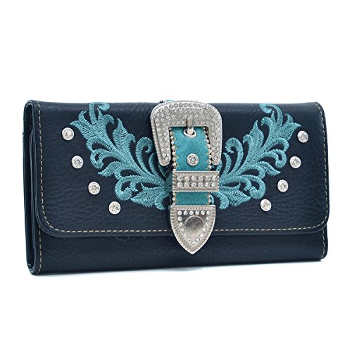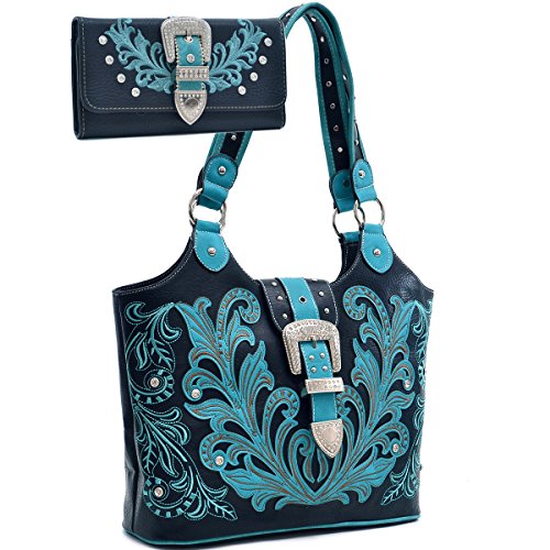 Western Rhinestone Buckle Embroidered Purse Handbag With Bonus Wallet