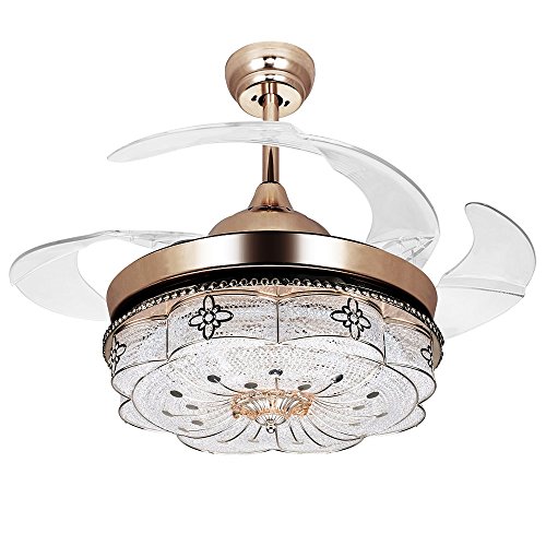 Size: Diamater 18.9 Inch (when The Blade Not Extended). Smoothly Gold Color (As Picture Showed), Four Retractable Transparent Acrylic Blades Automatic Freely to Pull Back, This Fan Light Has 3-ways Switch Without Reverse Function