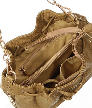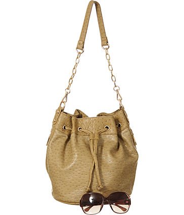 'Crossbody Bucket'' Ostrich Print Shoulder Tote-Bag