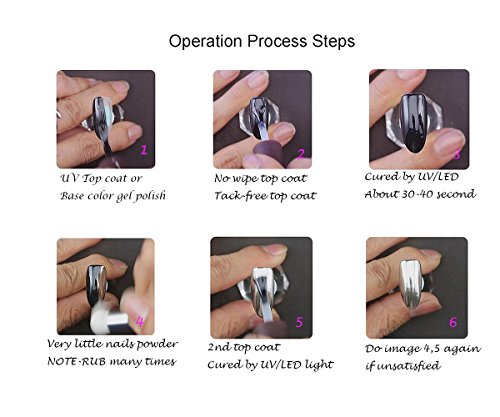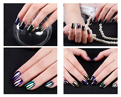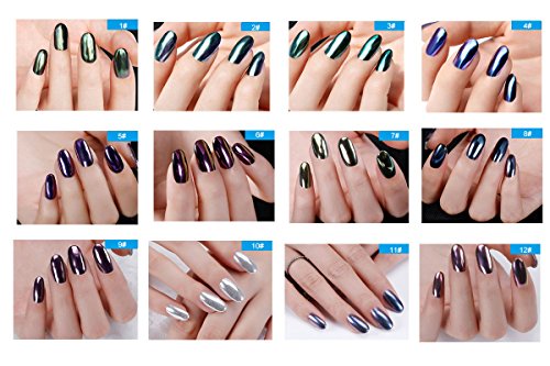 -. Feature : This nail powder is 100% new retail and high quality with exquisite packaging, great choice as a gift! / The mirrow nail powder is made of very fine powder and takes great mirror effect,personally tested! / The nail powder package is including 12 box nail powder(seal box),12 pcs fake nail and 6 pcs nail sponges. / The art nail powder is 12 color chrome nail powder, must apply it and match up different background colors.You can find the shades you like. / Small Tips: Must no wipe top coat then cured by UV/LED light about 10-35 second. Remember SMALL AMOUNT and many times rubbing.