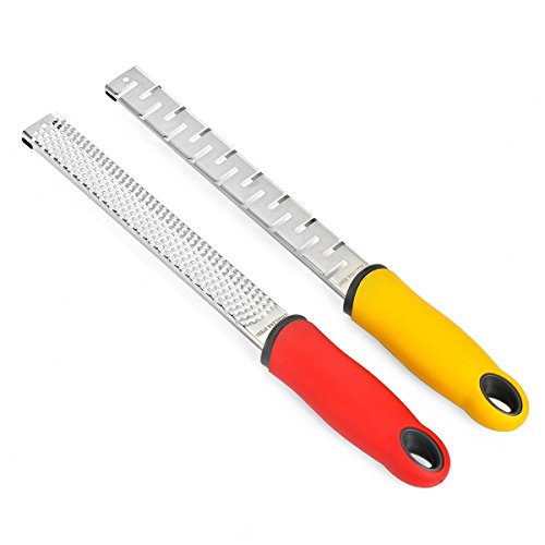 AODO 2 pack Lemon Zester & Cheese Grater - Parmesan Cheese, Lemon, Ginger, Garlic, Nutmeg, Chocolate, Vegetables, Fruits - Razor-Sharp Stainless Steel Blade + Protect Cover - Dishwasher Safe