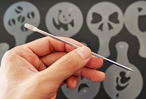 Trusted Buddy Coffee Art Pen with 16 pcs Cappuccino Templates and Stainless Steel Mesh Shaker with Lid