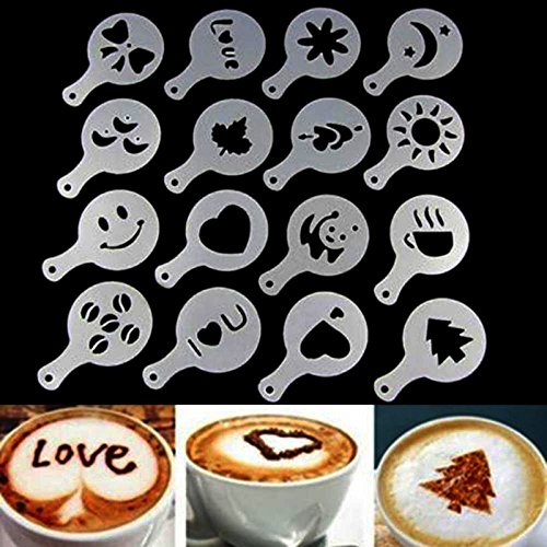 16 pcs cappuccino templates cute designs for all occasions approx. 3.3 inches in diameter