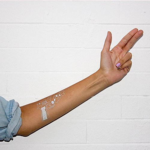 Tattify Holographic Rebellious Temporary Tattoo Sheet - Bad Girl (Set of 2 sheets) Fashionable Metallic Holographic Guns Knives and Hearts Removable Fake...