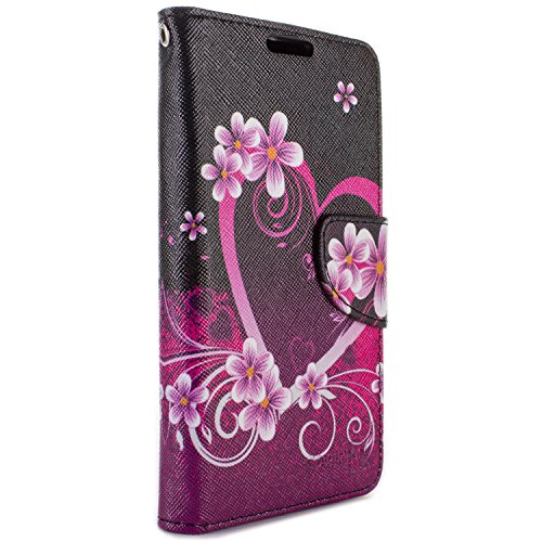 HTC Desire 520 Wallet Case, CoverON® [CarryAll Series] Flip Folio Credit Card Slot Pouch Cover Stand + Strap Case For HTC Desire 520 - Purple Love Heart