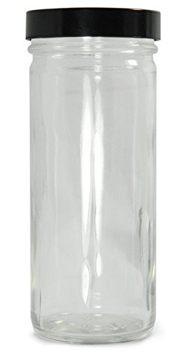Qorpak GLC-01662 Clear Glass 8oz Straight Sided Tall Jar, with 58-400 Black Phenolic Pulp/Vinyl Lined Cap (Case of 24)
