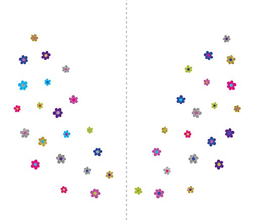 ⚡️ Set includes 25 individual colorful vintage hippie inspired metallic Psychedelic Daisy Eye Jewel Flash Tattoos