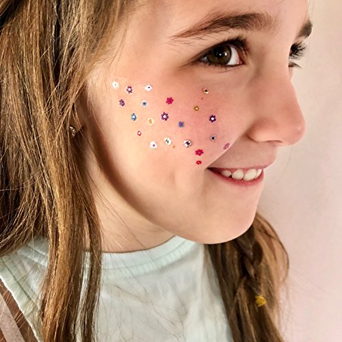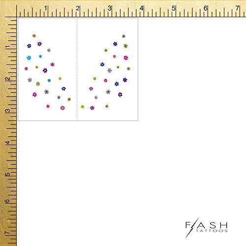 Psychedelic Daisy Eye Jewel set of 25 premium waterproof colorful metallic gold and silver foil temporary hippie inspired daisy face Flash Tats - party favors,...