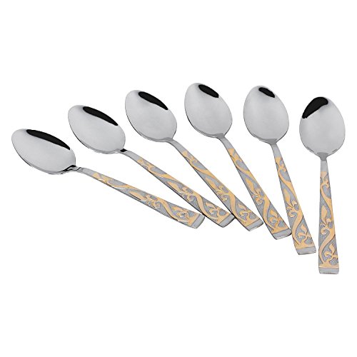 Premium Designer cWc Stainless Steel Dinner Spoon Gold Plated , 7.25-Inch, Set of 6 (gold1)
