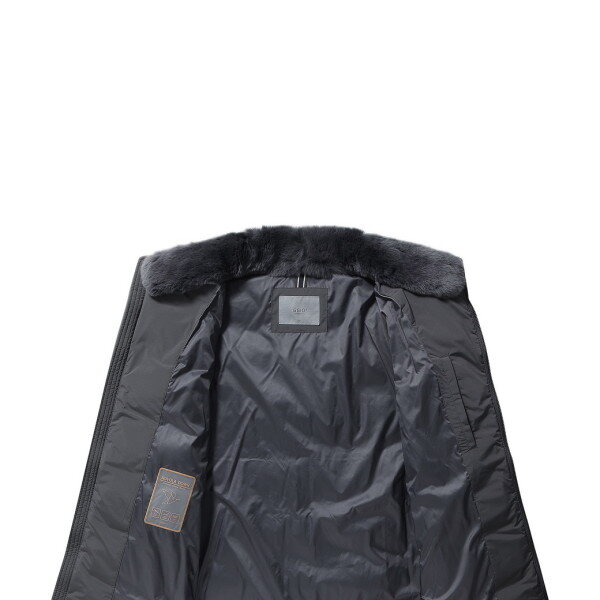 - 모노톤의 은은한 광택감이 묻어나는 남성 점퍼.- 신축성이 우수한 N/SPAN 소재를 적용하여 편안함.- 이면 전체 안감에 친환경성,흡습.방산성,순간 회복성,? 벌키성의 PRAUDEN GOOSE DOWN 충전재로? 보온성이 우수함.- 하이넥 디자인에 탈착 가능한 래빗 FUR 덧카라로? 변형 연출이 가능함.- 사이드 지퍼,인 포켓 디테일로 수납성을 더했음.- 소매단 이면에 립조직을 적용하여 밀착감을 높였음.- 동절기 시즌에 다양한 아이템과 코디가 용이함