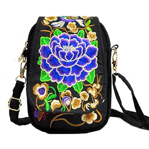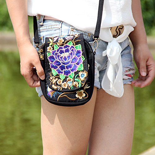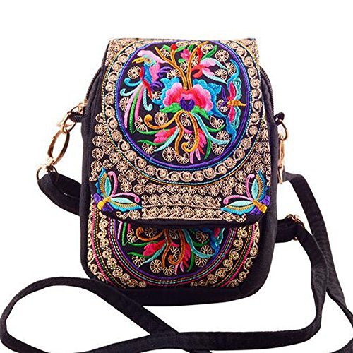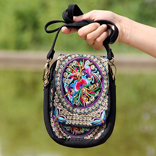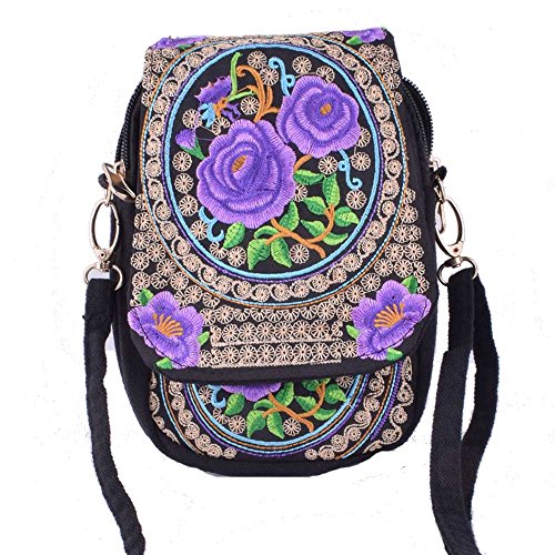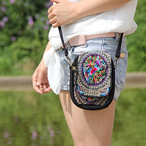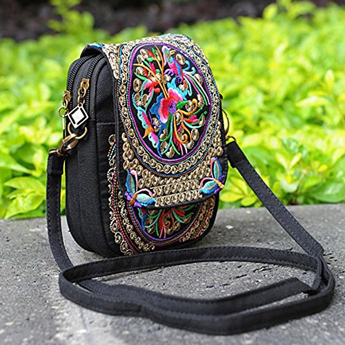 | (VINTAGE EMBROIDERY V.E.)/Accessories/Luggage, Bags Travel/DIRECT FROM USA/Vintage Embroidery 6.5" Women Messenger Bag Canvas Shoulder Small Phone Coins Purse Boho Bags … |