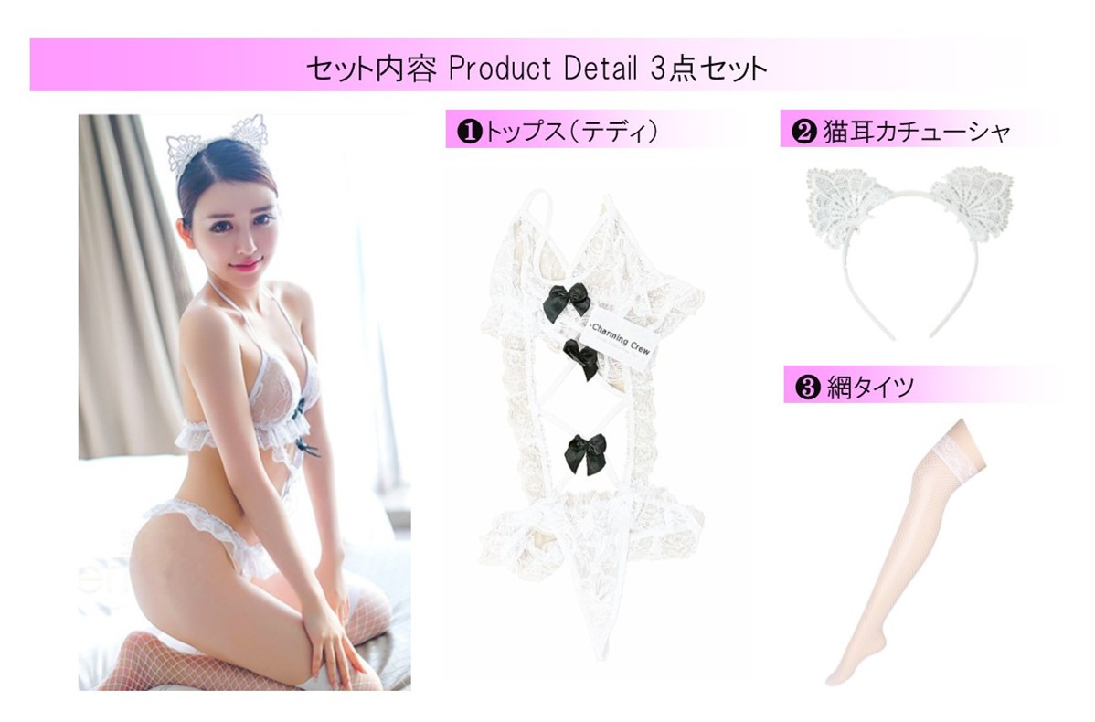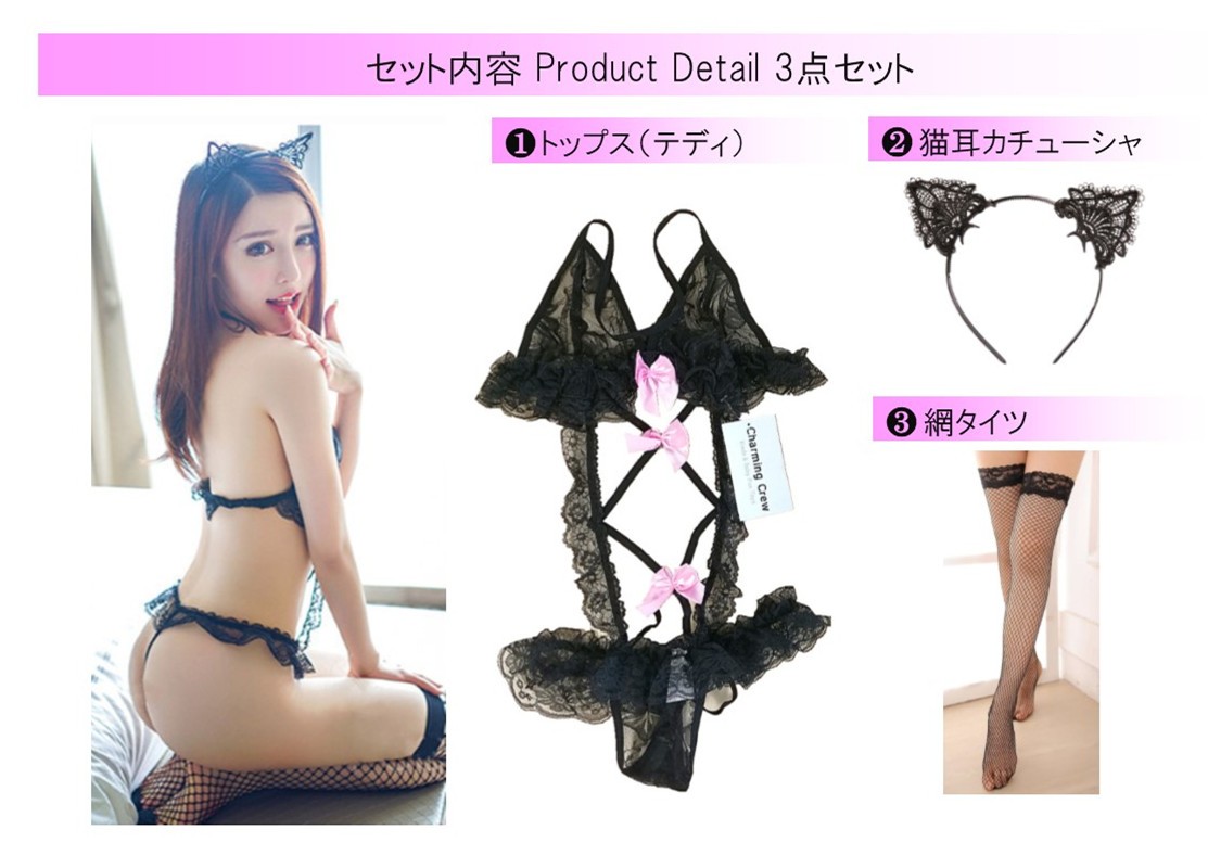 ■商品名セクシー 猫 セクシー下着 勝負下着 ランジェリー テディ セクシーランジェリー エロ レース 下着 通販胸キュン!レースモノキニスタイルセクシー猫コスチューム3点セット少し透けるレース生地にかわいい蝶リボンのアクセント付き!■セット内容レースモノキニレオタード 猫耳カチューシャ 網タイツ 3点セット■規格 FM-7880レディースフリーサイズ(S~Lサイズ相当)ブラック & ホワイトナイロン86%/スパンデックス14%※ベビードールやセクシーランジェリーなどの下着類やコスプレなどは商品名を伏せて発送させていただきます。うさ耳 コスプレ衣装 ハロウィン バニーガール 白 黒 レディース セクシー女性 激安 セール SALE コスチューム 大人 服 制服 通販 バニードレス バニー衣装 レオタード こすぷれ コス イベント ハロウィーン グッズ ドレス 宴会 ハロウィンコスプレ ハロウィン衣装 道具 大人用 仮装 うさぎ ウサギ耳 みみ ネコ 黒猫 演出服 変装 ヒョウ柄 ミニスカ スーパーマイクロミニ
