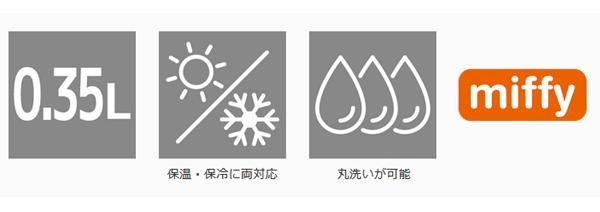 | 仕様 | 実容量:0.35L 保温・保冷両用 スポーツ飲料OK 丸洗いOK(食洗機使用不可) 保温効力(6時間):65度以上 保冷効力(6時間):11度以下 |