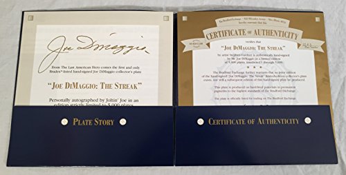 Joe DiMaggio Autographed The Streak Bradford Exchange Plate