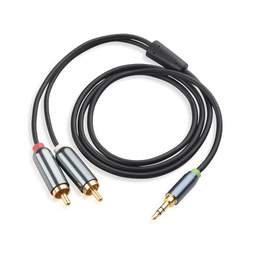 PREMIUM STEREO CABLE is engineered with a soft PVC jacket, polished metal connectors, and strain-relief rings that are color coded with the common red/white RCA plug colors; A beveled, step-down design of the 3.5mm connector accommodates most mobile devices in a case with a snug and secure connection