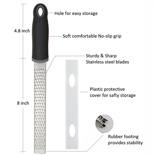 18/8 Stainless Steel Cheese Grater, Plastic Cover Ergonomic Soft Handle Lemon Ginger Potato Zester