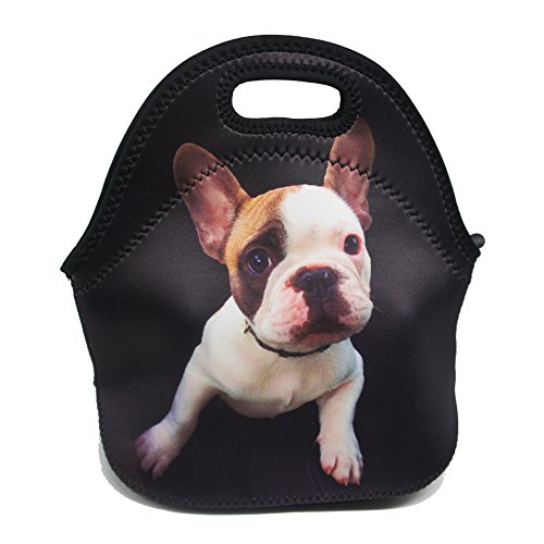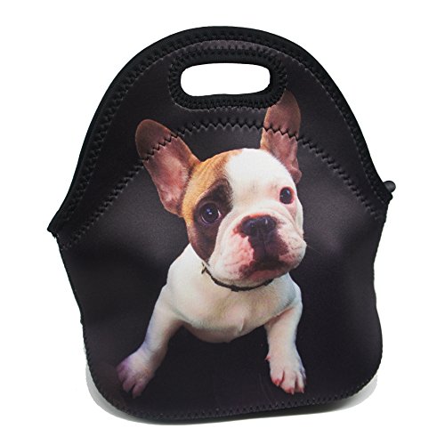 Artone French Bulldog Insulated Gourmet Lunch Bag Waterproof Neoprene Lunchbox Container Case Black