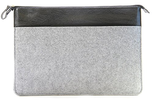 SettonBrothers Wool Felt Leather Sleeve Carrying Bag With Zipper Closure Air, 15 Inch, Grey/Black