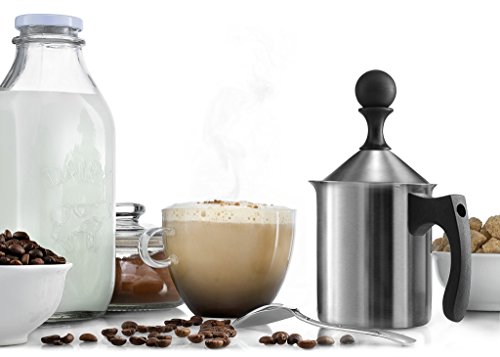 Francois et Mimi Milk and Creamer Frother Coffee Foam Pitcher with Handle and Lid, Stainless St...