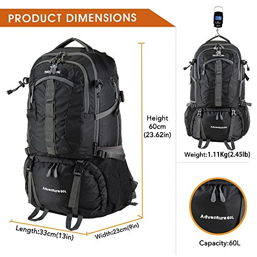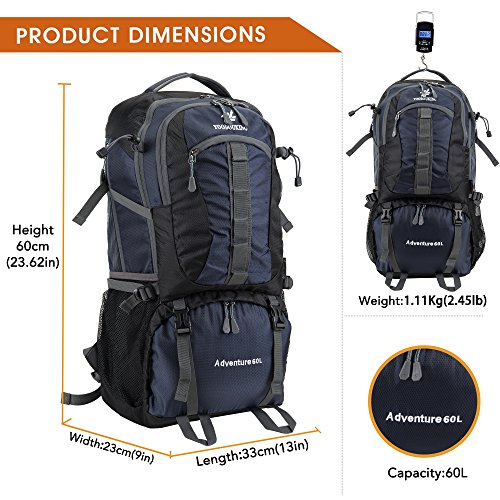 -. Binding : Misc. -. Brand : BAIGIO -. Feature : Durable for long-time use: Our travel backpack is made of high quality water resistant and tear resistant material.High intensity nylon material makes it more convenient to carry more load on your trips.Durable 2-way Abrasion Resistant SBS Metal Zipper across the backpack. / Comfortable to wear: S-shaped air cushion shoulder straps help relieve your shoulder stress. Adjustable shoulder length, free to adjust to ideal length. / Outdoor mountaineering backpack (2.45LB) and roomy (60L), Product Dimensions: Approx. 23.62H x 13W x 9D inches (60H x 33W x 23D cm). / Compact: Main pocket is large enough to carry what you need.Outer smaller pocket doubles as the storage pouch great for quick access such as magazines,guide brochure and camera.Inner zippered pocket which is perfect place for valuables such as cash,credit cards and passport.Two large side mesh pockets for water bottles or umbrella. / Perfect for both daily and outdoor activities.Use it as a carry on for your excess baggage,perfect for day trips,vacation, travel,day hikes,school,camping and shopping. -. IsAutographed : 0 -. IsMemorabilia : 0 -. Label : youbuwang -. Manufacturer : youbuwang -. MPN : 11962 -. PackageQuantity : 1 -. PartNumber : 11962 -. ProductGroup : Sports -. ProductTypeName : SPORTING_GOODS -. Publisher : youbuwang -. Studio : youbuwang -. Title : 55-60 Travel Backpack Hiking Daypack Trekking Backpack Waterproof Durable for sport outdoor mountaineering backpack Climbing Camping Cycling Backpack