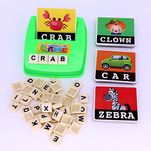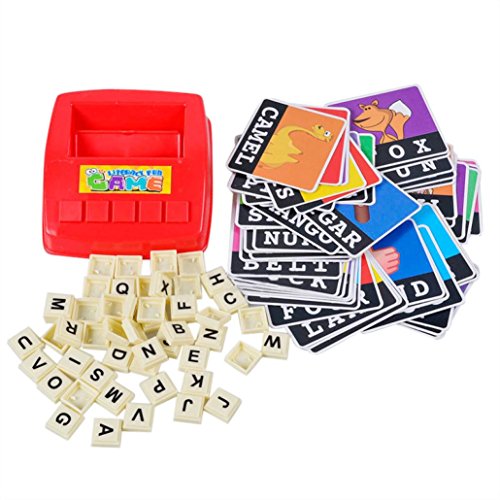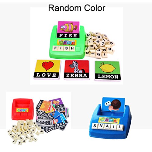 Features: Can train kids imagination, eye-hand coordination and color shape recognition. Can improve your kid's learning ability. Great gift for children. Specification: Brand New Material: Plastic Spelling Game Platter Size: Approx. 14.5cm x 13.5cm x 4cm (L x W x h) Card Size: Approx. 8.5cm x 7.5cm (L x W) Letter Size: Approx. 2cm x 2cm (L x W) Color: Random
