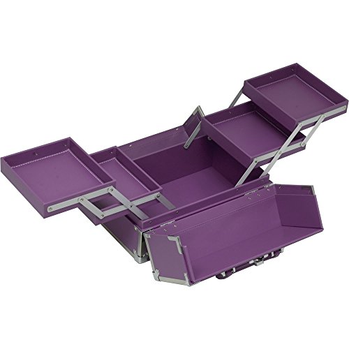 Sunrise Pro Makeup Train Case Organizer with 4 Padded Extendable Trays and Keylock, Purple